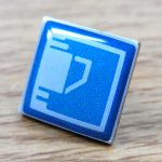 社章の印刷エポ仕上げはロゴを忠実に再現する仕上げの一つです。材料の上にフルカラー印刷を施し上に透明の樹脂をのせます。